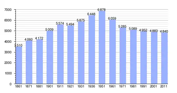 | Variação demográfica do município entre 1861 e 2011[3] |