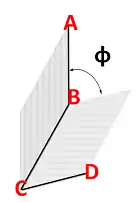 As diferentes conformações possuem diferentes ângulos de torção ao redor de uma ou mais ligações . O ângulo de torção (ϕ), que é um ângulo diedro, é o ângulo formado entre os planos que contem os átomos A,B,C e B,C,D.