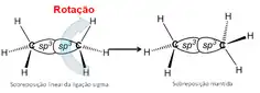 A molécula de etano, CH3-CH3, é composta por dois grupos metila com sobreposição de orbitais híbridos sp3 que formam uma ligação sigma (σ) entre eles. Os dois grupos metila não está fixos em uma só posição, eles são relativamente livres para girar em torno da ligação sigma que liga os dois átomos de carbono.