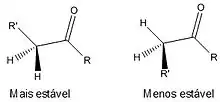 Cetonas também preferem a conformação eclipsada, estando o grupo alquil, e não o hidrogênio, eclipsado com o grupo carbonila. Esta conformação é mais estável porque permite que os dois grupos alquila sejam antie não gauche em relação ao outro substituinte da carbonila.