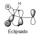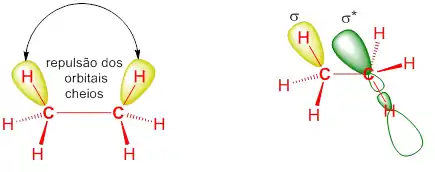 Uma explicação possível para a barreira rotacional de etano é mediante a utilização de orbitais de fronteira. Assim, a explicação proposta é que poderia existir uma interação de estabilização entre o orbital σ C-H no carbono e o orbital σ* da ligação C-H carbono vizinho, que é máxima quando os dois orbitais atômicos ficam em posição paralela (hiperconjugação).[17]