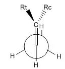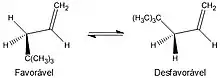 O aumento do tamanho do grupo no carbono C(3) favorece a conformação em que o hidrogênio encontra-se eclipsado. Por exemplo, o 4,4-dimetil-1-penteno existe principalmente na conformação em que o hidrogênio está eclipsado, e não as metilas.