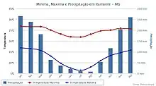 | Temperaturas em °C • Precipitações em mm Fonte: Tempo Agora | |||||||||||
