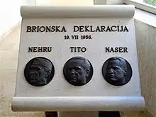 A Encontro de Brioni entre o presidente iugoslavo Josip Broz Tito, o primeiro-ministro indiano Jawaharlal Nehru e o presidente do Egito Gamal Abdel Nasser, ocorreu nas Ilhas Brijuni, na República Popular da Croácia constituinte da Iugoslávia, em 19 de julho de 1956.[11] Os três líderes assinaram um documento que afirma: