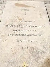 A lápide do Arcebispo Gawlina no cemitério de Monte Cassino