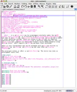 ![]() jEdit 4.2 mostrando o código fonte do artigo da Wikipedia anglófona. | |