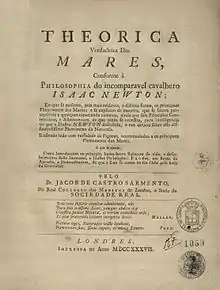 - Theorica Verdadeira Das Marés, Conforme à Philosophia do incomparavel cavalhero Isaac Newton. Londres, 1737.