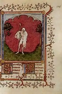 Petites Heures del Duque Juan de Berry, Escena: Loco, obra de Jacquemart de Hesdin, Biblioteca Nacional da França em Paris.