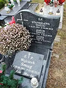O túmulo do jogador de futebol Jakub Smug (1914-2010) no Cemitério Łostowice em Gdańsk.