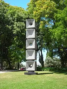 Castle of the Eye é a única peça escultórica decorativa do jardim. A escultura composta por cinco cubos de granito foi inaugurada em 1994 por iniciativa camarária. Obra do escultor japonês Minoru Niizuma, é uma peça não figurativa, minimalista, inserida num abstracionismo geométrico de natureza simbólica, fazendo recurso a quadrados ou cubos, numa alternância rítmica entre espaços cheios e espaços vazios, assumindo uma verticalidade acentuada e respeitando sempre uma hierarquia entre eles.