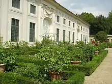 O jardim está localizado em frente ao pavilhão Kaffeehaus. Possui forma escalonada, descendo a colina do pavilhão. Os terraços são gramados e foram plantadas videiras e árvores frutíferas. No terraço mais baixo, foi instalado uma fonte de água com uma bacia oval de mármore branco. No centro da bacia há uma escultura de Ganimedes sobre uma águia, esculpida por Giovanni Battista Lorenzi.[12]