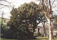 Acer negundo, Aesculus hippocastanum, Alnus cordata, Araucaria imbricata, Arbutus x andrachinoides, Calocedrus decurrens, Cedrus atlantica, Cedrus deodara, Cedrus libani, Celtis occidentalis, Cupressus funebris, Cupressus goveniana, Cupressus sempervirens, Cupressus torulosa, Cycas revoluta, Diospyros lotus, Erithea armata, Fagus sylvatica, Fagus sylvatica pendula, Fraxinus excelsior, Gingko biloba, Juglans nigra, Lagerstroemia indica, Liriodendron tulipifera, Magnolia grandiflora, Metasequoia glyptostroboides, Ostrya carpinifolia, Pinus halepensis sbsp brutia, Pinus nigra sbsp laricio, Pinus wallichiana, Pistacia chinensis, Pistacia terebinthus, latanus spp., Pterocarya stenoptera, Quercus cerris, Quercus ilex, Quercus lusitanica, Quercus macrolepsis, Quercus robur, Quercus suber, Sequoia sempervirens, Sophora japonica, Taxodium distichum, Taxodium mucronatum, Taxus baccata ♂, Taxus baccata hiberica ♀, Tilia platiphyllos, Torreya californica, Torreya nucifera, Torreya nucifera, Washingtonia filifera, Yucca australis, Zelkova carpinifolia, Zelkova crenata, Zelkova serrata.