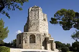 No século XVIII, durante os trabalhos de regularização do caudal da fonte Nemausa, foram descobertos muitos vestígios da época romana, incluindo os restos de um santuário dedicado a Augusto e de um teatro romano. Em 1745, Jacques Philippe Mareschal, engenheiro militar do rei e diretor das fortificações da província de Languedoc, foi encarregado pelo rei Luís XV de França de projetar e construir os Jardins de la Fontaine incorporando essas ruínas.[1]