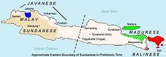 Apesar da numerosa população, ao contrário do que acontece com outras grandes ilhas da Indonésia, Java é comparativamente mais homogénea em termos étnicos. Só há dois grupos étnicos nativos da ilha: os javaneses e os sundaneses. Um terceiro grupo, os madureses, originários da ilha de Madura, situada ao largo da costa nordeste de Java, imigraram em grande número para Java Oriental a partir do século XVIII.[carece de fontes?]