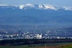 Vista de Jelenia Góra e do monte Łysa Góra (nas montanhas Kaczawskie), ao fundo o Śnieżne Kotły | |||