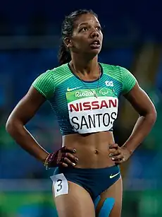Em agosto de 2016, na 1.ª etapa do Circuito Loterias Caixa de Atletismo e Natação, em São Paulo, Santos faturou a medalha de ouro no salto em distância classe T38 ao alcançar a marca de 4,72m, sendo essa a segunda melhor marca mundial da categoria.[8] Ela também ganhou o ouro nos 100 metros e nos 200 metros.[9]