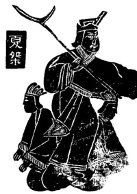 Por volta de 1600 a.C., Jie foi derrotado por Chengtang,[3] findando a dinastia Xia que governara por quinhentos anos e fundado a nova dinastia Shang.[3][4]
