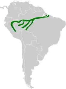 Pode ser encontrada nos seguintes países: Brasil, Colômbia e Peru.