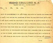 - Reunido o diretório do partido, sob minha presidência política, resolveu unanimemente não apoiar a candidatura do eminente Sr. Júlio Prestes à sucessão presidencial da República. Peço comunicar essa solução ao líder da Maioria, em resposta à sua consulta sobre a atitude da Paraíba.