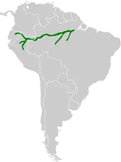Pode ser encontrada nos seguintes países: Brasil, Colômbia, Equador e Peru.[1]