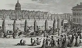 A primeira tentativa significativa de trazer de volta os antigos Jogos Olímpicos foi a L'Olympiade de la République, um festival olímpico nacional realizado anualmente de 1796 a 1798 na França revolucionária.[23] A iniciativa foi dada pelo deputado Charles-Gilbert Romme que foi guilhotinado um ano antes de sua realização.[24] A competição incluiu várias modalidades dos antigos Jogos Olímpicos Gregos. Os Jogos de 1796 também marcaram a introdução do sistema métrico no esporte.[23]