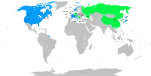 O Conselho Olímpico da Irlanda boicotou os Jogos de Berlim em 1936, devido o COI ter insistido que sua equipe se restringia ao Estado Livre Irlandês, em vez de representar toda a ilha da Irlanda.[142] Houve dois boicotes nos Jogos Olímpicos de Melbourne em 1956: Países Baixos, Espanha e Suíça recusaram-se a comparecer devido à repressão da revolta húngara pela União Soviética; Camboja, Egito, Iraque e Líbano boicotaram os Jogos devido à crise de Suez.[143] Em 1972 e 1976, um grande número de países africanos ameaçaram o COI com um boicote ao forçá-lo a proibição da África do Sul e da Rodésia, por causa de seu regime segregacionista. Também a Nova Zelândia foi um dos motivos ao boicote africano, porque a Seleção Neozelandesa de râguebi excursionou na África do Sul de regime declaradamente apartheid. O COI concedeu nos dois primeiros casos, mas se recusou a proibição de Nova Zelândia, alegando que o râguebi não era um esporte olímpico.[144] Cumprindo a ameaça, vinte países africanos juntaram-se ao Iraque e a Guiana liderada pela Tanzânia na retirada a partir dos Jogos de Montreal, depois que alguns de seus atletas já haviam competido.[144][145] Taiwan, também decidiu boicotar estes jogos porque a República Popular da China (RPC), exerceu pressão sobre o Comitê organizador de Montreal para manter a delegação da República da China (RC) competir sob esse nome. A RC refutou o compromisso proposto que ainda lhes permitia usar o hino e a bandeira da República da China, desde que o nome fosse mudado.[146] Taiwan novamente não participou até 1984, quando retornou com o nome de Taipé Chinês e com um bandeira e o hino especial.[147]