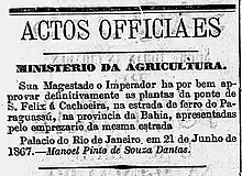 - JUNIOR, Cyro Diocleciano Ribeiro Pessoa. Estudo descriptivo das Estradas de Ferro do Brazil. Rio de Janeiro: Imprensa Nacional, 1886, p.184.