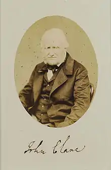 John Clare (aldeia de Halpston, Northamptonshire, 13 de julho de 1793 – Northampton General Lunatic Asylum de Northampton, 20 de maio de 1864) foi um poeta inglês, filho de um agricultor, que se tornou conhecido por suas celebrações da paisagem rural inglesa e a tristeza por sua destruição.[1] Sua poesia foi fortemente reavaliada no final do século XX: ele agora costuma ser visto com um dos poetas mais importantes do século XiX.[2] Seu biógrafo Jonathan Bate afirma que Clare foi "o maior poeta da classe trabalhadora que a Inglaterra já produziu. Ninguém jamais escreveu mais poderosamente sobre a natureza, uma infância rural e um eu alienado e instável".[3] Segundo Alexei Bueno, no Prefácio à antologia de poemas de Clare por ele traduzidos, "A triste verdade é que o imenso poeta que foi John Clare não alcançou o devido reconhecimento em vida, ainda que hajam chegado a chamá-lo de 'Burns inglês', reconhecimento este só alcançado no século seguinte, e encarecido no atual por uma natural reivindicação, por parte de movimentos ecológicos e preservacionistas, do seu incondicional amor pela natureza".[4]