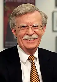 John Robert Bolton (Baltimore, Maryland, 20 de novembro de 1948) é um diplomata, ex-militar, advogado e político norte-americano conhecido por suas visões conservadoras e nacionalistas. Foi embaixador dos Estados Unidos na ONU de 2005 a 2006 durante a administração George W. Bush. Também trabalhou no gabinete dos governos George H. W. Bush e Ronald Reagan.[1] Em março de 2018, foi apontado pelo presidente Donald Trump para servir como seu Conselheiro de Segurança Nacional, cargo que manteve até setembro de 2019.[2]