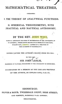- Craik, Alex D.D. (1998). «Geometry, Analysis, and the Baptism of Slaves: John West in Scotland and Jamaica». Historia Mathematica. 25 (1): 29–74. ISSN 0315-0860. doi:10.1006/hmat.1997.2174
