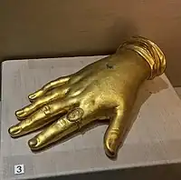 A escultura original em gesso, que traz o sinete com as Armas do Império no dedo anular, foi moldada pelo escultor Marc Ferrez, no dia 7 de março de 1841, a partir da mão direita do próprio Imperador menino, Dom Pedro II.