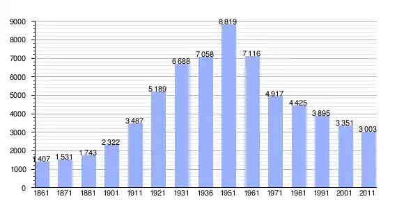 | Variação demográfica do município entre 1861 e 2011[3] |