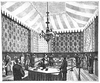 A introdução do telefone em meados da década de 1870 incluiu várias demonstrações de seu uso através da transmissão de concertos musicais a várias distâncias. Em um destes exemplos, Clément Ader preparou uma sala a listening room at the Exposição Internacional de Eletricidade de 1881 em Paris, na qual os frequentadores poderiam ouvir às apresentações, com som estereofônico, realizadas na Ópera de Paris.[3] O conceito também foi mencionado no romance utópico de Edward Bellamy, Looking Backward: 2000-1887, de 1888, que previa entretenimento em áudio enviado através das linhas telefônicas às residências.[4]