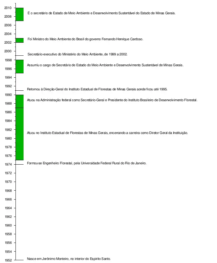 Como Ministro, representou o país em eventos globais sobre sustentabilidade.[6] Para além do Ministério, atuou como Secretário-Executivo do Ministério de Meio-Ambiente, Diretor e Presidente do Instituto Brasileiro do Meio Ambiente e dos Recursos Naturais Renováveis (IBAMA), Secretário de Estado de Meio Ambiente de Minas Gerais e Diretor-Geral do Instituto Estadual de Florestas (IEF-MG).[7][8]
