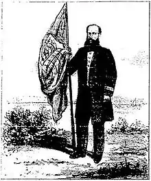 O almirante José Carlos de Carvalho fincando o pavilhão nacional em território paraguaio.