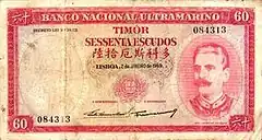 Foi impressa uma série de notas, de 30$00, 60$00, 100$00 e 500$00, de Timor Português com a sua imagem.