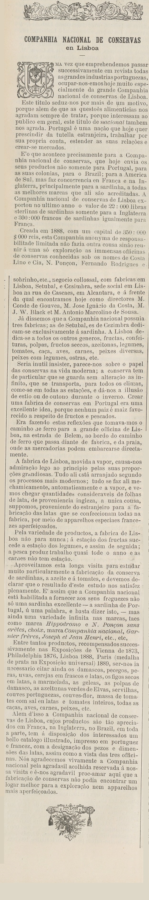 - «Companhia Nacional de Conservas em Lisboa». Le Panthéon de l'industrie: journal hebdomadaire illustré:. 1 de agosto de 1892