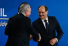 Sartori cumprimentando o presidente Michel Temer, em agosto de 2017.