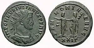 ![]() Antoniniano de Juliano celebrando as duas províncias romanas na Panônia (Inferior e Superior). | |