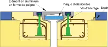 Essas juntas são constituídas por dispositivos metálicos, fixos nos dois lados da junta da ponte, onde se acomodarão as descontinuidades dos trilhos, e suportam movimentos de até 400mm.
