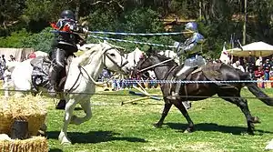 Justa é um desporto jogado por dois cavaleiros com armaduras montados em cavalos. Consiste numa competição marcial entre dois cavaleiros montados, usando uma variedade de armas, geralmente em grupos de três por arma (como a inclinação com um lança, golpes com machados, ou golpes com a espada), entre outros, muitas vezes, como parte de um torneio.[1]