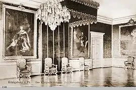 - Sala do Trono: nas paredes encontravam-se retratos de todos os reis prussianos falecidos: Frederico I, Frederico Guilherme I, Frederico II, Frederico Guilherme II, Frederico Guilherme III, Frederico Guilherme IV, Guilherme I e Frederico III. A imagem do último monarca, Guilherme II, já não foi acrescentada. O trono estava coberto por um baldaquino arqueado; no pavimento encontravam-se tapetes com representações de cavalos da raça Trakehner.