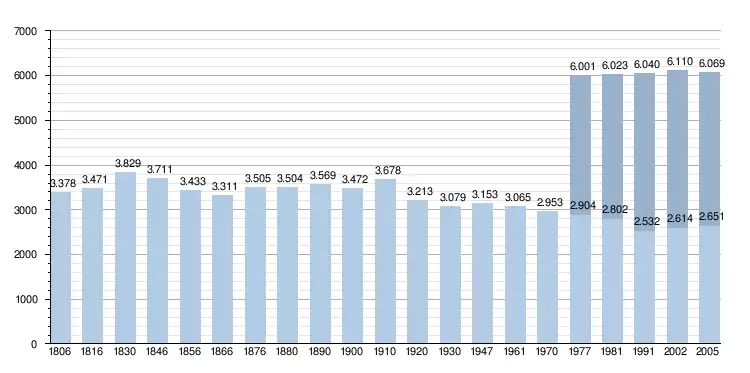 - Fonte:NIS, www.meetjesland.be en gemeente Kaprijke - Opm:1806 t/m 1991=volkstellingen; 1977, 2002 en 2005=nº de habitantes a 1 de janeiro