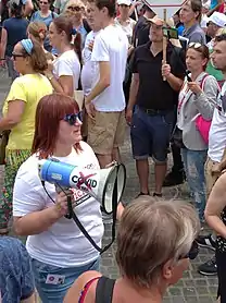 Karen se manifestando contra COVID-19 e vacinas