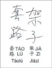 ![]() Ideogramas para "Tàolu" e "Jiàzi" escritos pelo grão-mestre Chan Kowk Wai. | |