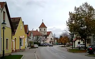 ![]() Hauptstraße und Dorfkirche von Katzelsdorf | |