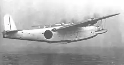 ![]() Visão lateral do Kawanishi H8K em voo rasante. |