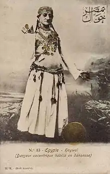 Após proibições de mulheres dançando em público, garotos e homens crossdressers tomaram seu lugar em todo o Oriente Médio; e em alguns países árabes, esses dançarinos eram conhecidos como gawwal, e no Egito, eles eram conhecidos pelo termo relacionado khawal.[2] O khawal imitava as ghawazi dançando com o acompanhamento de castanholas, pintando as mãos com henê, trançando seus cabelos longos, arrancando seus pelos faciais, usando maquiagem e adotando os modos das mulheres.[2]