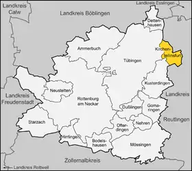 | Localização de Kirchentellinsfurt no distrito de Tübingen | |