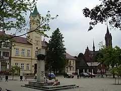 - Praça da cidade com a fonte "Bartek" financiada pelo conde Łosia de Brzysk,